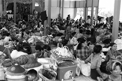 9月16日,在缅甸内比都,受灾民众在临时避难所躲避洪水。