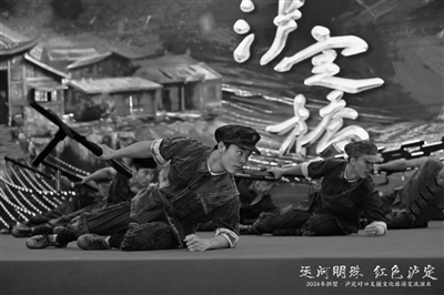 现场,一场独具泸定特色的“文化走亲”演出精彩上演。舞台剧《飞夺泸定桥》、群舞《岚安锅庄》、杵坭山歌《泸定人民欢迎你》等节目吸引众人目光。“这次带来的原创舞台剧《飞夺泸定桥》2.0版本,再现了飞夺泸定桥的片段,在收获观众广泛好评的同时,也逐渐成为泸定县的一张‘红色名片’,欢迎大家来到大美甘孜,来到红色泸定。”泸定县红飘带文化产业公司董事长尹航做出邀请。