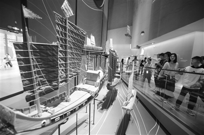 游客在江苏扬州中国大运河博物馆参观