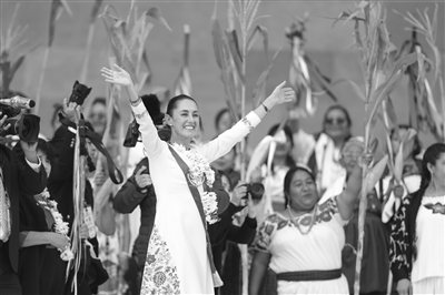 辛鲍姆出席就任墨西哥总统庆祝活动 10月1日,在墨西哥首都墨西哥城宪法广场,克劳迪娅·辛鲍姆出席庆祝活动。 墨西哥当选总统克劳迪娅·辛鲍姆1日在首都墨西哥城宣誓就职,成为墨西哥历史上首位女总统。