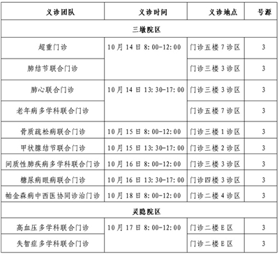2.10月17日全天两院区专家号和普通挂号费全免。所有号源均通过网上或现场预约。