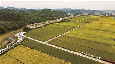 丰收如画 近日,各地稻田进入丰收季。图为在临安区天目山镇九里村,一望无际的稻田宛若一幅金色的油画铺展在大地上,美不胜收。 商报记者 项凯 摄影报道