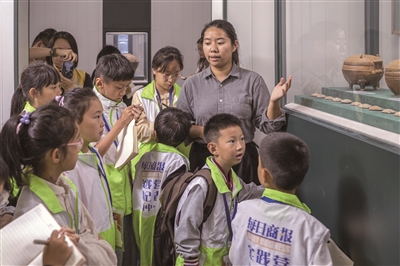 10月19日下午,每日商报小记者实践营来到杭州市文物考古研究所余杭考古工作站。同学们在杭州市文物考古研究所专家丁颢的带领下,参观了古邑风华——余杭汉六朝考古成果展,并亲手触摸文物标本,畅想2000年前的杭州人如何生活。