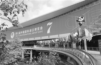 这是装饰一新的国家会展中心(上海)西入口天桥(11月2日摄)。 第七届中国国际进口博览会将于11月5日至10日在上海举行。目前,场馆内外装饰布展工作已进入收尾阶段,静待盛会开幕。