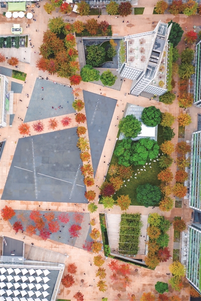 最近,杭州天目里的第一批枫叶已经红了,其他的树木也穿上了渐变色外衣,美不胜收,宛如一幅色彩斑斓的秋日油画,吸引了市民游客前来赏景拍照。商报记者 项凯 摄影报道