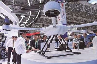11月13日,观众在第十五届中国国际航空航天博览会现场了解一款智能检测无人机。在广东珠海举办的航空航天博览会专门设立了低空经济馆,全方位展示低空经济相关企业及应用场景。