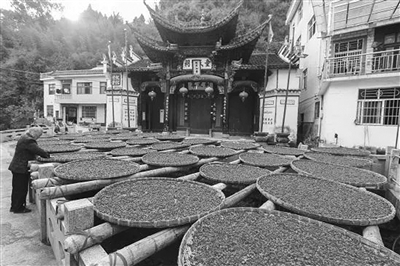 浙江“山茱萸之乡”淳安临岐山茱萸进入采摘期,房前屋后到处可见山茱萸产新秋晒场景