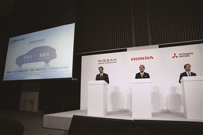 本田日产 正式宣布启动合并谈判 12月23日,日产汽车公司社长内田诚(左)、本田汽车公司社长三部敏宏(中)和三菱汽车公司社长加藤隆雄在日本首都东京共同出席记者会。日本汽车制造商本田汽车公司和日产汽车公司23日在东京共同宣布,本田、日产和三菱汽车三方已签署谅解备忘录,本田与日产将正式开启合并谈判,三菱汽车公司将就参与合并事宜进行探讨。