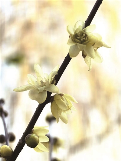 蜡梅已在枝头静静绽放,淡雅的黄色为寂静的冬日带来一抹明亮,暗香浮动,穿过寒冷,静待春来。