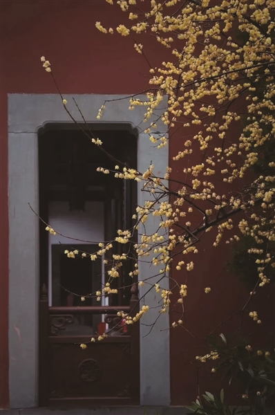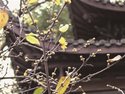 岳王庙内零星散布的蜡梅已先后开放,这些散落在枝头的“富贵黄”,夹带暗香,远观悠悠近赏熠熠,为寒冬腊月新增一抹馥郁芬芳。