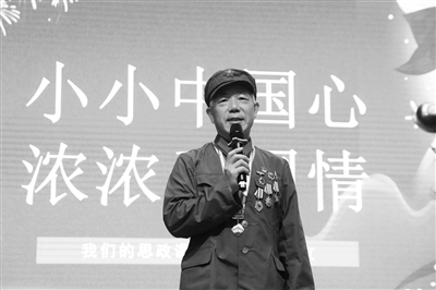 徐锡华(1979年战场上活下来的幸存老兵、浙江省五星志愿者、杭州市国防五进讲师、小营红色宣讲员)正在给学生做主题演讲