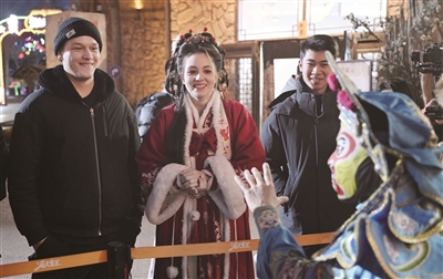 1月14日,外国友人在银川市漫葡小镇观看川剧变脸。当日,“四海同春 欢乐宁夏”系列活动在宁夏银川市漫葡小镇举行。30余名在宁外籍专家、留学生走进景区,观看非遗展示、体验国潮服饰、品尝传统美食,感受中国优秀传统文化的魅力和浓浓的春节氛围。