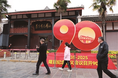 1月15日,游客在遵义会议会址参观。遵义会议召开90周年之际,不少游客来到位于贵州省遵义市的遵义会议会址参观,感受红色文化,追寻红色记忆。