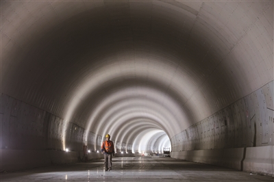 1月16日,广州海珠湾隧道东西线之间6座承担人员疏散、消防等功能的联络通道全部贯通,这也是国内首个采用小盾构法施工的超大直径水下盾构隧道联络通道。广州火车南站快速通道控制性工程——海珠湾隧道以双管盾构隧道形式下穿珠江水道和洛溪岛。该线按照双向6车道的城市主干道标准建设。这是施工人员行走在15.07米超大直径广州海珠湾隧道东线盾构隧道内。