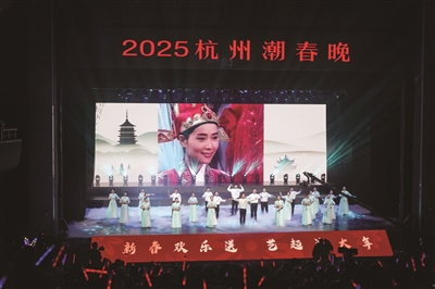 昨晚,2025杭州潮春晚在杭州大剧院热力联欢。现场,各路才艺名家、流量达人汇聚一堂,与现场和新媒体端观众线上线下跨屏联动,共同打造了一台潮味十足、沉浸体验的文化盛宴。据了解,2025杭州潮春晚是杭州文广集团“新春欢乐送 艺起过大年”的序幕活动,由杭州演艺集团、杭州电视台西湖明珠频道、杭州大剧院、杭州市上城区文化和广电旅游体育局共同承办。商报记者 项凯 摄影报道