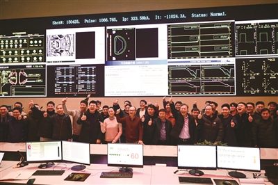 中国“人造太阳”创造“亿度千秒”世界纪录 1月20日,EAST物理实验团队在实验成功后庆祝。当日,我国有“人造太阳”之称的全超导托卡马克核聚变实验装置(EAST)在安徽合肥创造新世界纪录,首次完成1亿摄氏度1066秒“高质量燃烧”,标志我国聚变能源研究实现从基础科学向工程实践的重大跨越,对人类加快实现聚变发电具有重要意义。