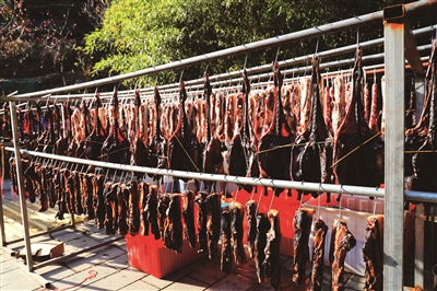 每到年末,家家户户都忙着制作酱货。无论是挂在廊檐下的腊肠,还是散发着阵阵香气的酱鸭,都能让人感受到浓浓的年味。太阳一晒,泌出层层油脂,香味四溢,是烟火气,也是美好生活的具象化。