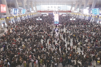 1月25日,旅客在铁路杭州东站候车大厅候车。 1月25日,春运迎来节前客流高峰。来自交通运输部数据显示,当日全社会跨区域人员流动量预计超2.7亿人次。 新华社发