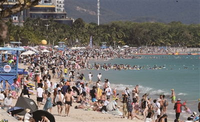 2月6日,海南省三亚市大东海景区人头攒动。春节假期已过,三亚旅游市场依然热度不减。记者走访三亚各大景区发现,错峰出游的游客络绎不绝。
