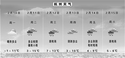 本周“集中供暖”即将到来 需注意,新一轮冷空气也在路上 商报讯(记者 周雨菲 制图 占丽骏)刚刚过去的这周末,一股实力强劲的冷空气冻得人如坠冰窖。周六最低气温一度跌至-4.6℃,创下今年冬天的气温新低,还成为了35年来的2月最冷的一天。谁能想到在立春之际,还能再把冬天最厚的羽绒服穿出来一次。这一轮操作下来让不少市民出门时感慨杭州冷得像北方,回到家发现自己还在南方,因为家里比外面还冷。这样的温度还要持续多久?好消息来了,冷空气的“嚣张”日子不长了!“集中供暖”即将到来,而且不费电、不费气。 据浙江天气发布的消息,从今天开始,冷空气影响逐渐减弱,白天气温明显回升。明天,全省大部地区最高气温将回升至14-17℃。 消失了好久的“雨水君”也开始刷起存在感。明后两天,受高空槽和冷空气影响,全省阴有雨。本周五至周六,受倒槽发展和冷空气先后影响,全省还将有一次较明显的降水过程。这段时间,大家可能会感受到春雨绵绵的意境,出门记得带伞。不过,雨水也会让空气变得湿润,缓解近期干燥的天气状况,对我们的皮肤和呼吸道都有好处。 具体到杭州,随着冷空气的影响逐渐减弱,昨天白天起气温逐渐回升。今天起,风向逐渐向南转变,因此升温的动力更足,最高气温将达到11 ℃左右。到了明天,暖湿气流逐渐占据天气的主导地位,气温也将达到下周的顶峰,最高在15 ℃左右,和前几天冰凉的体感相比要舒适很多。 不过本周三起,随着新一股冷空气到来,气温将再次下降,但这一次冷空气的实力较弱,气温下降得不会那么明显。但这股冷空气带来的另一个转变是阴雨天气开始多起来了,目前看周三和周五、周六都将有雨水出现。 此外,今天早晨的气温依然较低,最低气温-1至-3℃,有冰冻,山区-4至-7℃,有严重冰冻,请大家注意晨间的保暖,谨防感冒。
