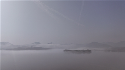 雾中西湖 别样美景 昨日,由于雨后空气湿度大,加上辐射降温的影响,杭州出现了能见度不足500米的浓雾。雾中的西湖,展现出别样的美景。图为浓雾中的雷峰塔和三潭印月。 商报记者 严嘉俊 摄影报道