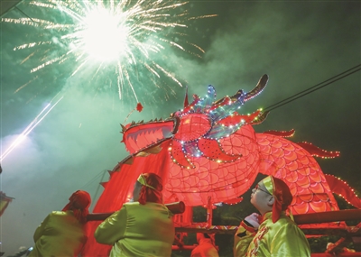 2月15日,农历正月十八,杭州市淳安县大墅镇儒洪村村民们举行“赶十八”舞龙表演。“赶十八”始于明朝永乐年间,至今已有600多年的历史。儒洪村祖先将正月十五元宵节改至正月十八,很多亲友会赶在当天参加,故成为古村儒洪村特有的元宵文化。如今,这个活动已成为当地特色旅游项目。
