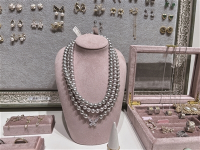 而在位于国大城市广场的贝黎仕珍珠,各种款式的珍珠首饰,也成了近期极受顾客欢迎的人气单品。正在挑选珍珠的大学生小胡选中了一条真多麻贝珠项链和一对珍珠耳环。她表示:“现在我们有很多同学都买了一些珍珠饰品,我也觉得挺好看的。而且相比较其他大牌首饰,几百元一件的珍珠首饰也很有性价比。”