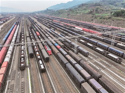 3月7日,重庆兴隆场铁路编组站扩能改造工程顺利完工并开通运营。据介绍,改造前该编组站日均办理车能力为1.75万至2万车,扩能改造之后每日提升1000余车。兴隆场编组站位于重庆市沙坪坝区回龙坝镇,总占地5200余亩,是西南地区规模最大的铁路编组站和国内现代化水平领先的编组站之一,也是重庆中欧班列、西部陆海新通道的始发站。这是扩容后的兴隆场编组站在进行货列解编作业(无人机照片)。