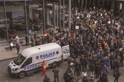 示威者在美国纽约特斯拉门店前聚集(图源外媒)。据国际在线微信公众号