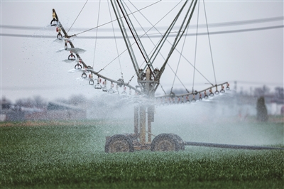 3月14日,河北省石家庄市栾城区天亮合作社采用桁架式灌溉机进行节水喷溉,促进冬小麦返青。春回日暖,田耕正忙。在今年的春耕生产中,各种新技术、智能化农业机具纷纷“上岗”,一幅幅“科技春耕图”在广袤田野铺展开来。
