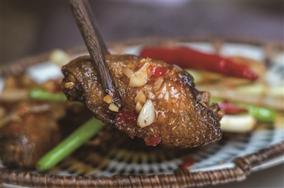 还有一道是鱼露鸡翅,带着一丝期待,吃了一口发现鱼露的鲜香渗透进了鸡翅,还有浓浓的黄油香,整体是淡淡的甜口,细嚼是明显的焦脆口感。