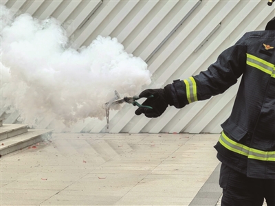 如果遇到充电宝起火,石林玉强调,常见干粉的灭火器对它没有太大效果,最好的办法是用水进行浸泡。
