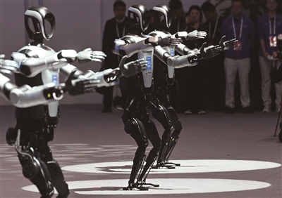 3月27日,2025中关村论坛年会在北京中关村国际创新中心举行。近百台机器人活跃在迎宾、交流、主持、表演、服务等场景,为与会嘉宾提供服务。中关村展示中心常设展内也设置了人形机器人展区,集中展出人形机器人新技术、新产品。这是人形机器人“夸父”在年会开幕式机器人秀环节中表演。