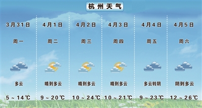据杭州市气象台消息,今天起,阳光回归,气温会逐渐上升,天气越来越好,明起,最高气温将再次回到20℃以上,洗晒和外出踏青都可以安排起来了。