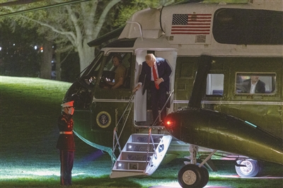 3月30日,美国总统特朗普乘直升机返回首都华盛顿白宫。