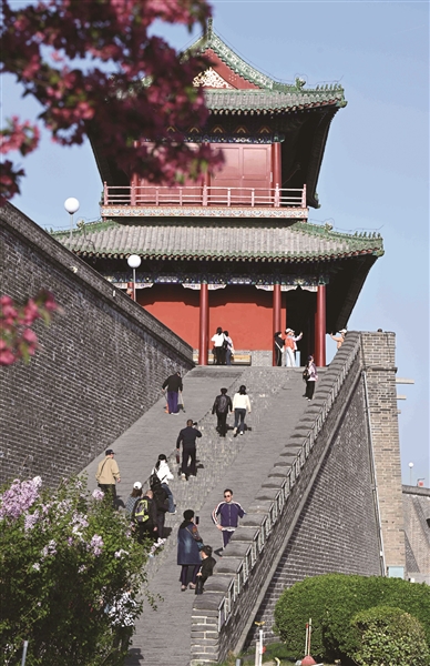 4月6日,游客在河北省石家庄市正定古城游玩。清明假期,人们走出家门,亲近自然,畅享美好春光。