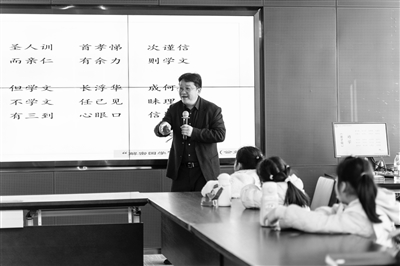 在讲解《千字文》时,他则从“自然盛世”“厚德之名”“忠孝修身”“华夏史地”“清心淡泊”五个方面切入,“福缘善庆”“寸阴是竞”“性静情逸”“守真志满”……吴老师认为,作为独领蒙学读物风骚的训蒙长诗,《千字文》中所蕴涵的智慧语言,值得随时研读与细品。
