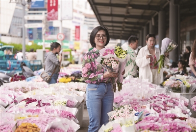 4月11日,越南花商阮翠云在中国云南昆明斗南花卉市场看花进货。越南老街花商阮翠云自2018年起将云南花卉销往越南,从采购到物流平时均在线完成。不过,每月她还会坐动车从河口到昆明进行采购,她创立的公司通过老街口岸,将云南优质花卉运往河内、胡志明等越南城市,让七彩“云花”成为越南家庭的常客。