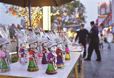 4月12日,湖北省恩施州宣恩县城的城管执法人员在引导摊贩摆地摊。夜幕降临,宣恩县城区沿贡水河两岸的城市主通道上,摊贩每晚只需一元租金,便可在规划区域内获得一个地摊摊位的夜间经营权。“一元租”地摊、“地摊小屋”等,为城市增添了烟火气,为“夜经济”注入了新活力。