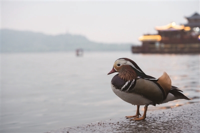 昨天杭城迎来阵雨、冷空气并伴大风,未来一周晴雨相间,好消息是今天和后天有两天降水间歇。图为昨日,一只鸳鸯静立在烟雨朦胧的西湖边。 商报记者 严嘉俊 摄影报道