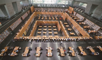 4月22日,读者在北京国家图书馆内阅读、学习。在世界读书日即将来临之际,很多读者选择与书相伴,在国家图书馆内读书、学习。