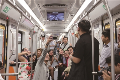 4月23日,墨西哥首都墨西哥城地铁新1号线举行部分通车仪式。墨西哥城地铁1号线横跨市区,始建于上世纪60年代。由于使用时间久远、系统设备老化,当地政府于2022年启动了对1号线的全面现代化改造,中国企业中车株机公司等参与其中。这是在墨西哥城,媒体记者在地铁新1号线列车上合影。