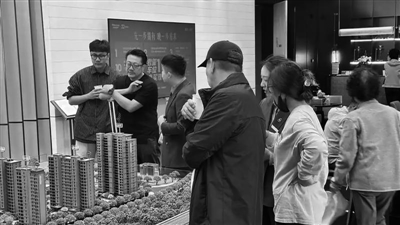 5月1日下午,位于南京河西新城奥南片区的颐和铂樾府,不少看房人正围着销售人员了解楼盘情况。