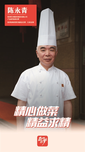 回望来时路,陈永青曾远赴海外,参加中西美食文化交流活动,为杭帮菜鼓劲撑腰;也曾“出征”G20,带领团队参与峰会元首宴会菜品制作。当谈到如何理解工匠精神时,他只是简单而直接地表示:“我认为我们这个行业的工匠精神就是精益求精,认认真真地做好每一道菜。”