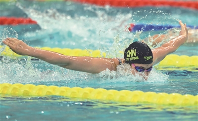 5月17日,2025年全国游泳冠军赛在广东深圳举行。这是浙江寿仙谷队选手余依婷在女子100米蝶泳半决赛中。最终,她晋级决赛。