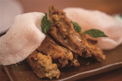 再说说罗宾塔塔酱鸡翅,搭配一起食用的塔塔酱里点缀着酸黄瓜碎,咬开酥到掉渣的外皮,内里的鸡肉竟还挂着汁,热乎的肉香混着柠檬皮屑的清香,吃着一点也不腻。翅根关节处的软骨,咬下去“咯嘣”作响,还带着软骨特有的弹性,让人忍不住吮指回味。