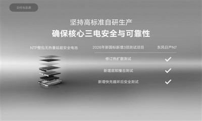 此外,N7的超安全笼式车身,成功挑战行业首个巴音布鲁克翻滚挑战。针对用户最关注的三电, 东风日产坚持高标准自主研发生产,最大程度确保安全性与可靠性。