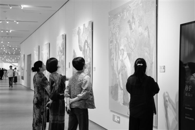 画家祖呓创作的作品《青春协作曲》在巡展上广受好评,观赏者络绎不绝。“这是我在学生时期创作的一张工笔人物画,主要展现不同年轻女性的生活状态。工笔人物画细腻,每一根线条的勾勒、每一次色彩的晕染都是与笔下人物的对话,希望大家感受到其中的青春与活力。”祖呓介绍道。