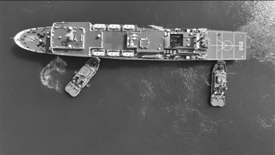 近日,我国自主设计建造的万吨级远洋医院船“吉祥方舟”号在黄海某海域开展卫勤演练。