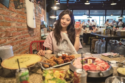 走进店内,装修风格别具一格,采用工业风设计,各种鲜艳颜色的桌椅与墙上醒目的韩文标语,浓郁的韩式氛围扑面而来。不少下沙的学生表示,这家店已经成为了他们的“第二食堂”。从进门的韩语问候开始,店墙上悬挂着韩国老板徐晌熏的生活照片墙,每一张照片都记录着他从韩国到杭州的人生轨迹,背后蕴藏着无数动人的故事。“每张照片背后都有故事,可以慢慢看。”